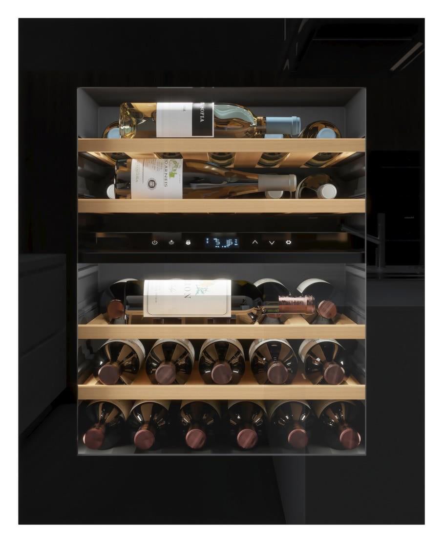 Integrierter, selbstbelüfteter Kühlkeller mit schwarzer Säule für 29 Flaschen – Push-Pull-Öffnung