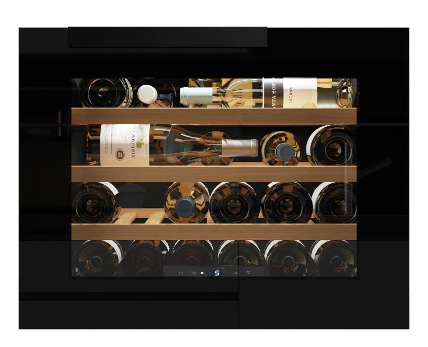 Eingebauter Weinkeller-Kühlschrank mit schwarzer Säule für 24 Flaschen – einziehbarer Griff
