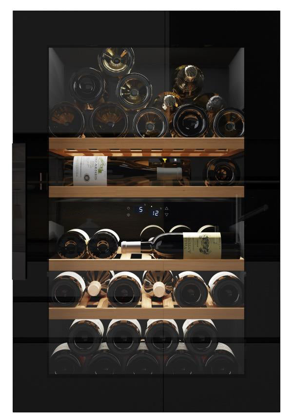 Eingebauter Weinkeller-Kühlschrank mit schwarzer Säule für 52 Flaschen – einziehbarer Griff
