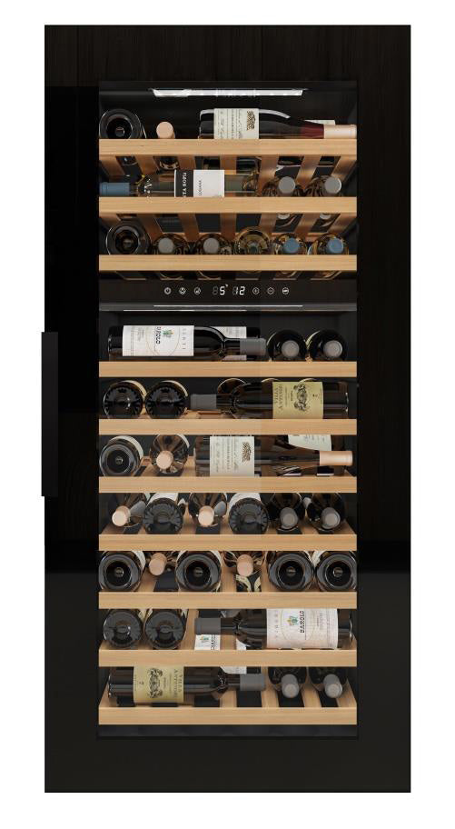 Eingebauter Weinkeller-Kühlschrank mit schwarzer Säule für 70 Flaschen – einziehbarer Griff