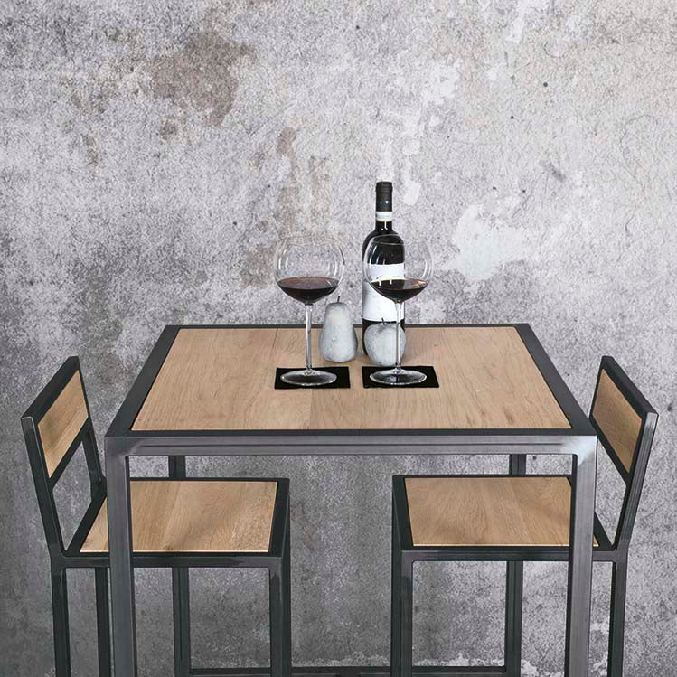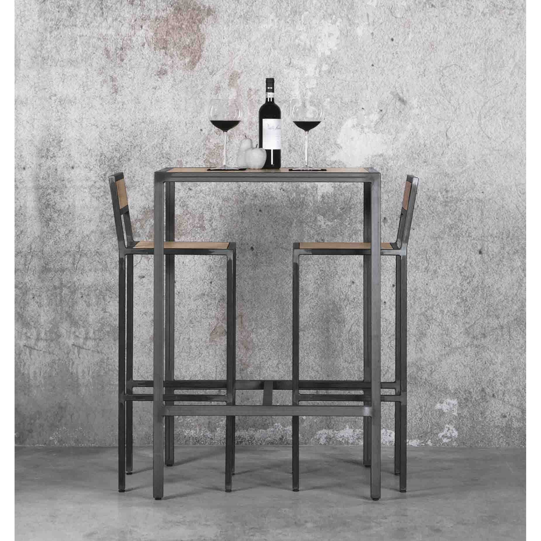 <p>Bar table, made with metal structure and oak top<br/> Dimensions:70x70xH 100 cm<br/> Finish:Natural Iron and Oak</p>