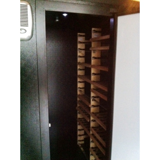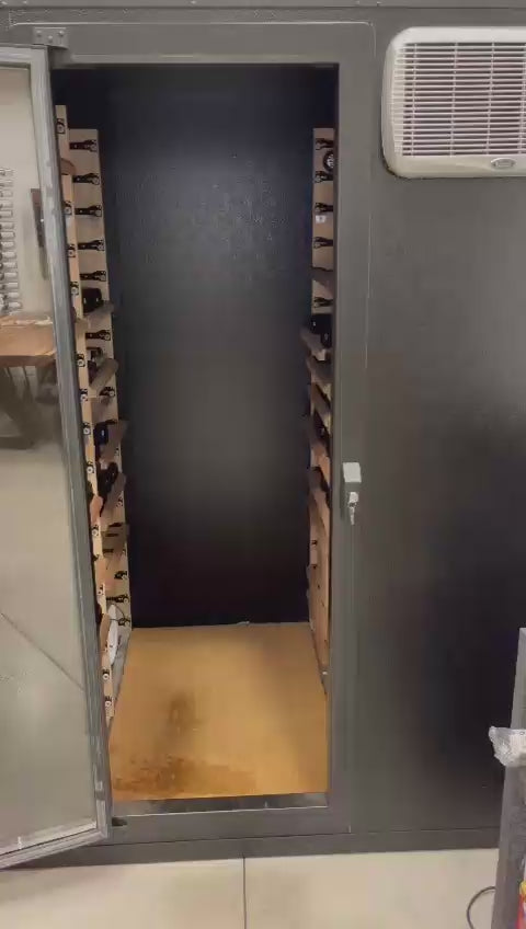 <p>Air-conditioned cabin made <strong>of insulated aluminum panels</strong> equipped with <strong>air conditioning that guarantees temperature, humidity and ventilation,</strong><br> <strong>Capacity up to 990 bottles</strong> with 23 sliding shelves as standard<br> Easy assembly and disassembly (assembly on request)<br> <strong>Color:</strong> Black<br><br> <strong>You can see it on display in our showrooms!</strong></p><figure class="image"><img src="{{media url="alt=""></figure>