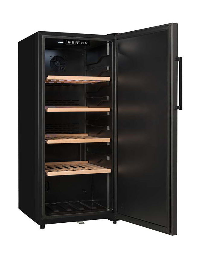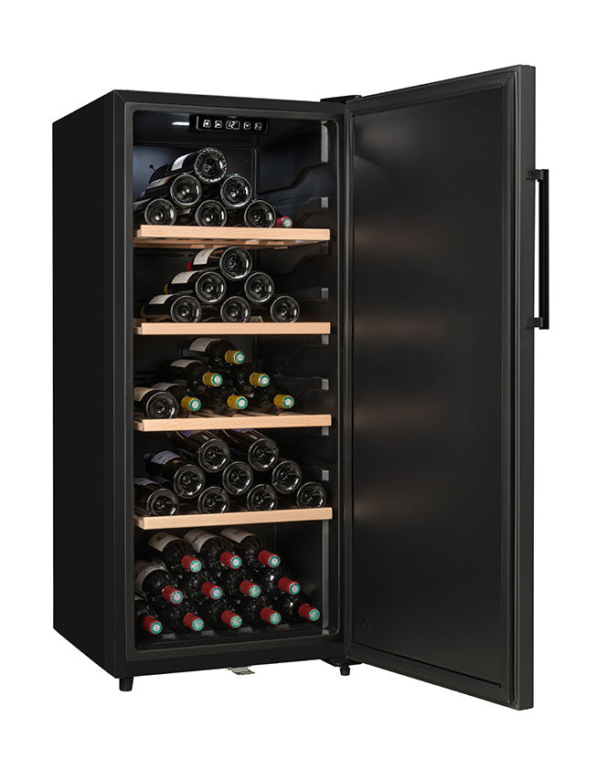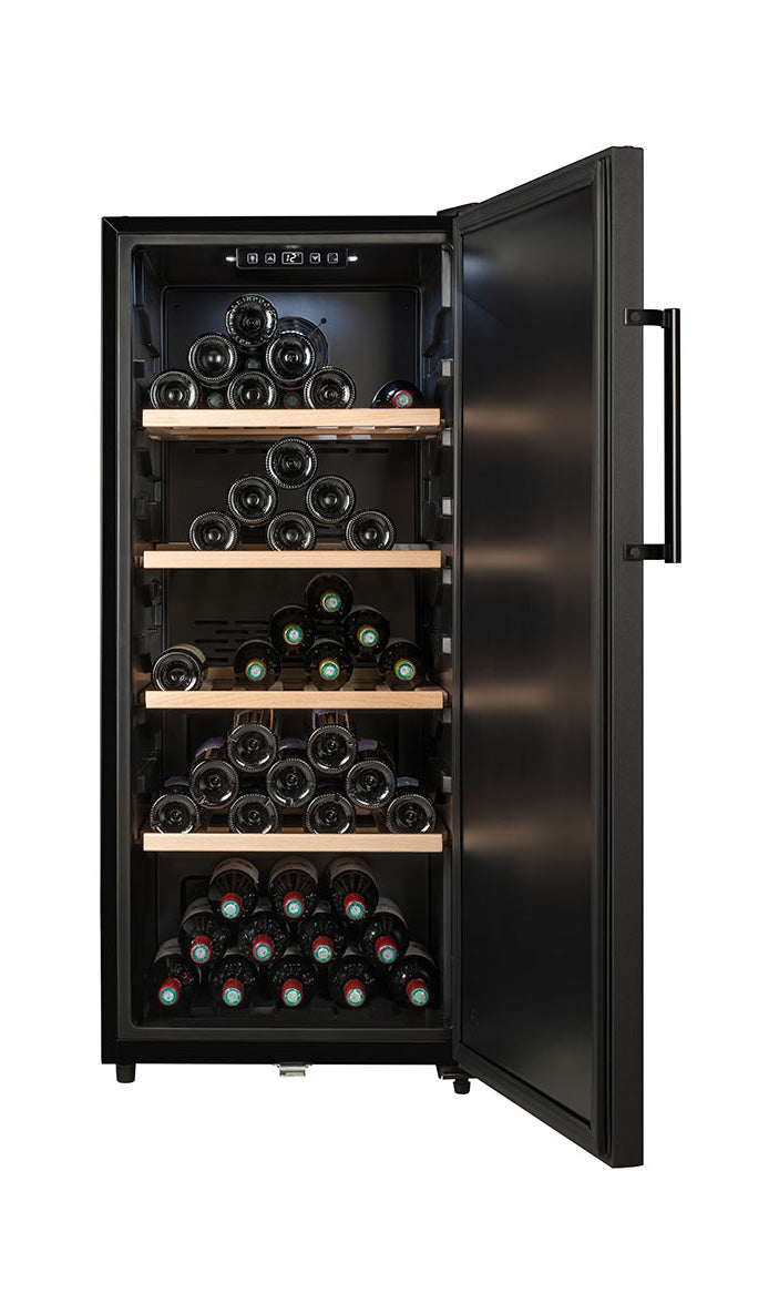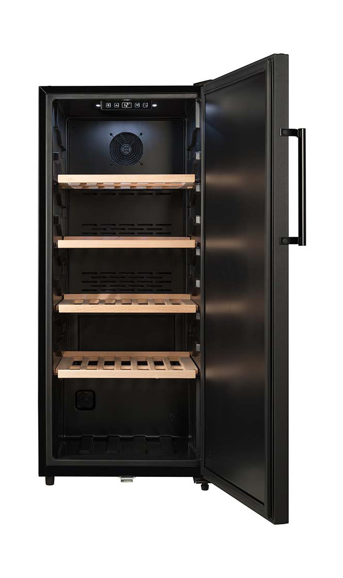 <p><span style="color:rgb(33,43,54);">Capacity: 106 bottles*</span><br><span style="color:rgb(33,43,54);" >Free Installation</span><br><span style="color:rgb(33,43,54);">Color:&nbsp;Black</span><br><span style="color:rgb(33) ,43,54);">Cooling system: compressor</span><br><span style="color:rgb(33,43,54);">Refrigeration: static</span><br><span style="color:rgb(33,43,54);">Temperature adjustable from&nbsp;5° to 20°C</span><br><span style="color:rgb(33,43,54);" >Electronic regulation</span><br><span style="color:rgb(33,43,54);">Electronic thermometer with white display</span><br><span style="color:rgb(33) ,43,54);">White LED lighting with switch</span><br><span style="color:rgb(33,43,54);">Compatible with the application&nbsp;</span><a href="https://cdn.shopify.com/s/files/1/0561/8535/6486/files/VINOTAG.pdf?v=1663343823"><span style="color:rgb(150,0,0 );"><strong>VINOTAG®</strong></span></a><br><span style="color:rgb(33,43,54);"><i>(see characteristics, in collaboration with VIVINO)</i></span></p><figure class="image"><img src="{{media url=" alt=""></figure>