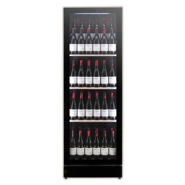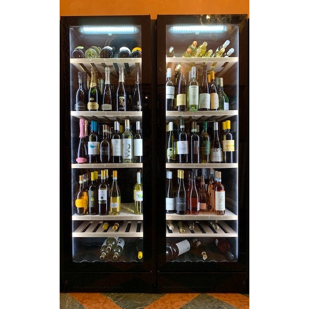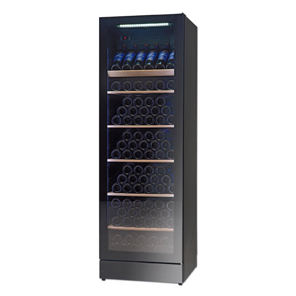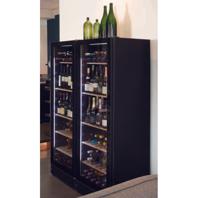 <p><span style="color:rgb(33,43,54);">Single temperature wine cellar</span><br><span style="color:rgb(33,43,54);"> Adjustable: from +5° to +22°C</span><br><span style="color:rgb(33,43,54);">Exclusive display case entirely in glass</span><br><span style="color:rgb(33,43,54);">6 wooden shelves </span><i>(1 45° inclined shelf for display)</i><br><span style=" color:rgb(33,43,54);">Ventilated refrigeration</span><br><span style="color:rgb(33,43,54);">top and side LED lights</span><br><span style="color:rgb(33,43,54);">Energy class&nbsp;G</span><br><span style="color:rgb(33,43,54);">Double smoked anti-UV glass</span><br><span style="color:rgb(33,43,54);">Maximum absorption: 170 W</span><br><span style="color:rgb (33,43,54);">Capacity: 197 0.75 liter bottles.</span></p><figure class="image"><img src="{{media url=" alt=" "></figure>
