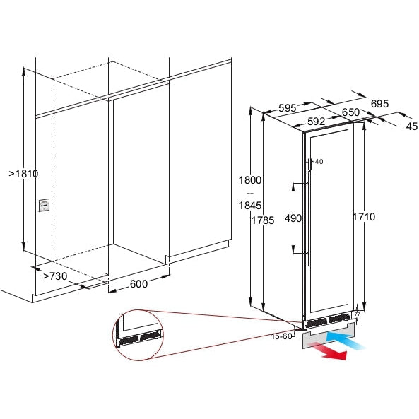 Built-in Refrigerator 150 bottles Block Double Temperature