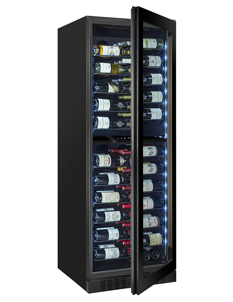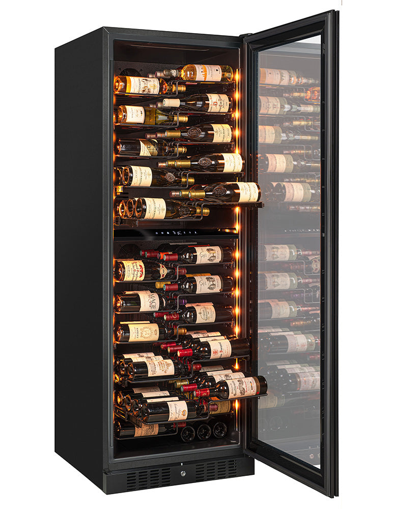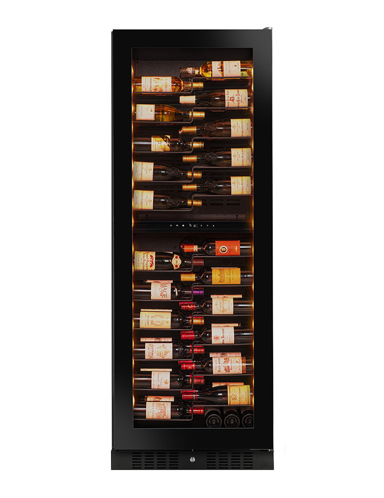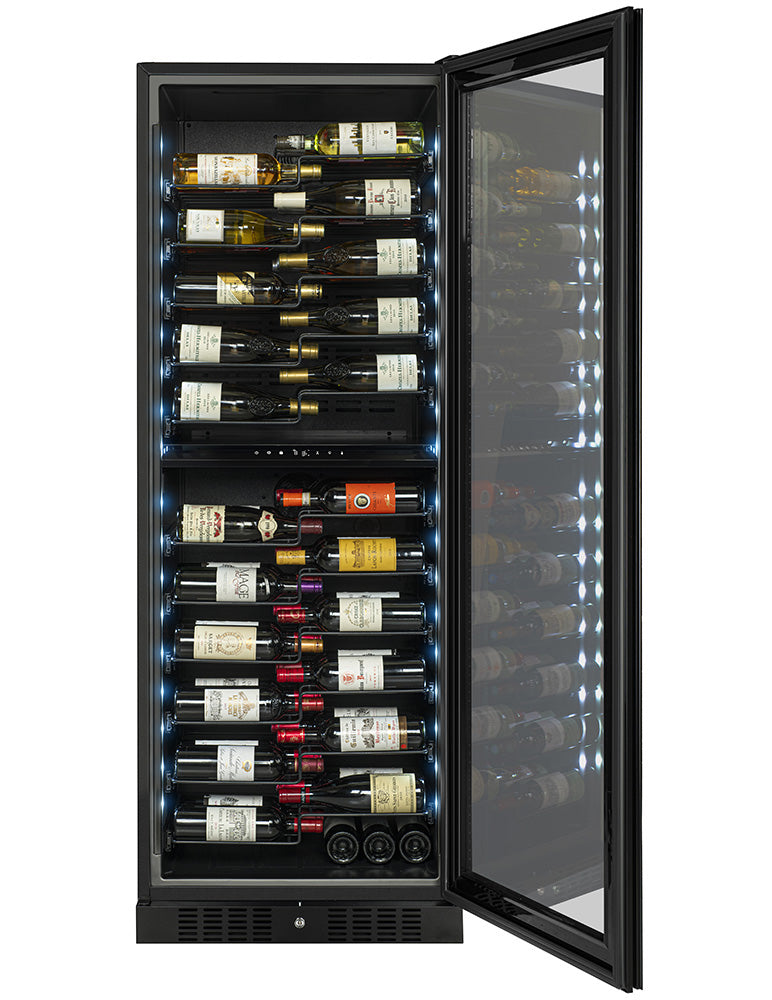 <p><span style="color:rgb(31,33,36);">Capacity: 131 bottles*</span><br><span style="color:rgb(31,33,36);" >Free installation and built-in</span><br><span style="color:rgb(31,33,36);">Design: Black</span><br><span style="color:rgb( 31,33,36);">Cooling system: compressor</span><br><span style="color:rgb(31,33,36);">Refrigeration: Ventilated</span><br><span style="color:rgb(31,33,36);">Adjustable temperature:</span><br><span style="color:rgb(31,33,36);">- upper zone: 5 °-20°C </span><i>(60 Bottles)</i><br><span style="color:rgb(31,33,36);">- lower zone: 5°-20° C </span><i>(71 Bottles)</i><br><span style="color:rgb(31,33,36);">Electronic regulation</span><br><span style= "color:rgb(31,33,36);">Electronic thermometer with white display</span><br><span style="color:rgb(31,33,36);">LED lighting with switch</span><br><span>Double layer anti-UV double glazing door</span><br><span style="color:rgb(31, 33,36);">Compatible with the application&nbsp;</span><a href="https://cdn.shopify.com/s/files/1/0561/8535/6486/files/VINOTAG.pdf? v=1663343823"><span style="color:rgb(150,0,0);"><strong>VINOTAG®</strong></span></a><br><i>(see characteristics, in collaboration with VIVINO)</i></p>