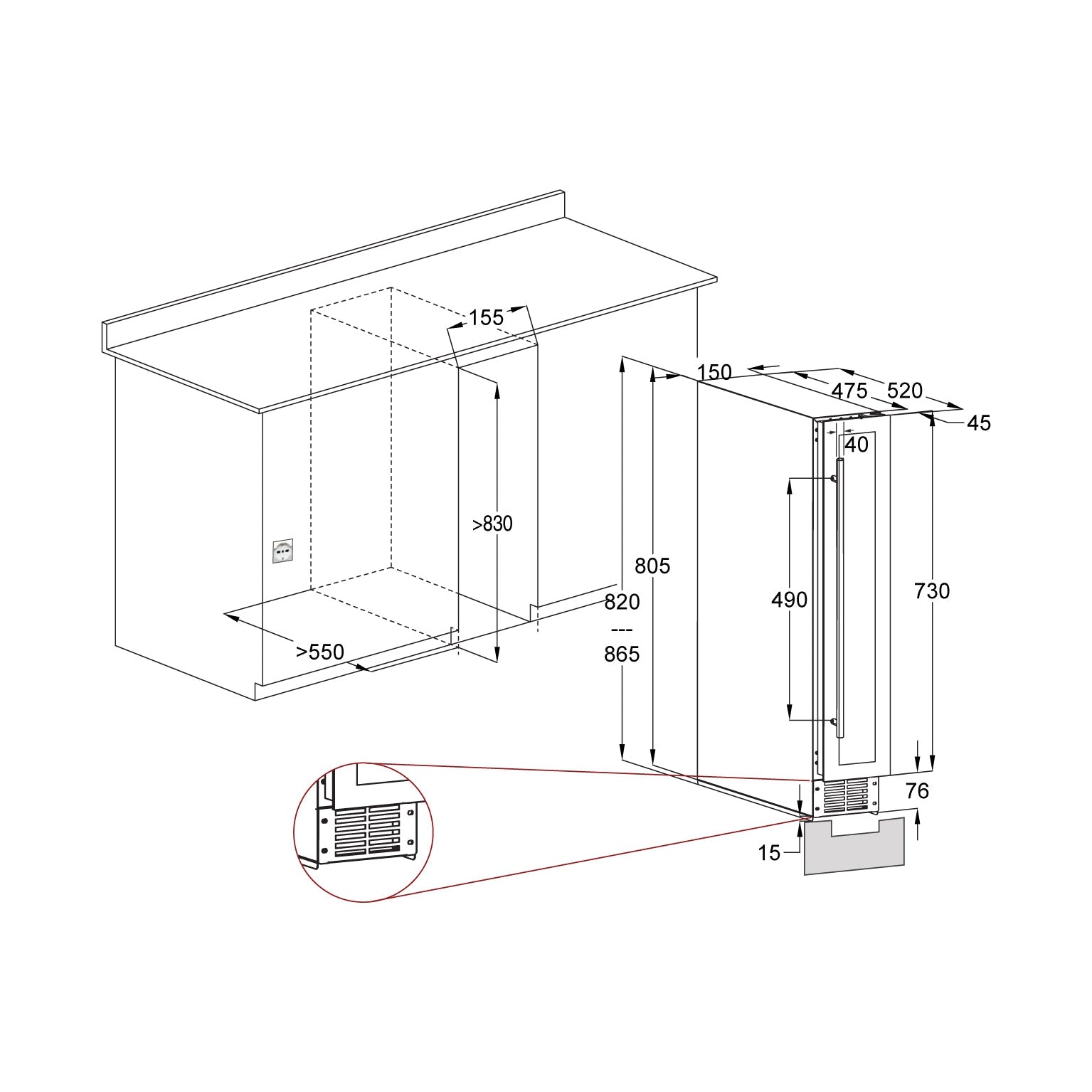 <p>In a small space, however, this cellar can accommodate up to <strong>9 bottles of wine</strong> .<br> Practical and functional. <strong>Temperature:from + 2 ° to + 20 °</strong><br> <strong>Energy Class G</strong> <i>(old class A)</i></p>