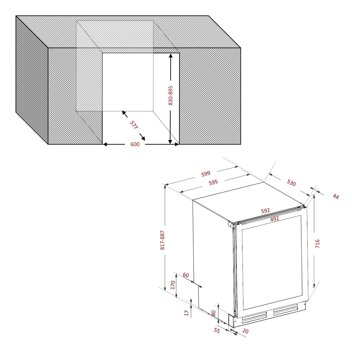 Built-in Cellar Fridge Black 44 Bottles. Single Temperature