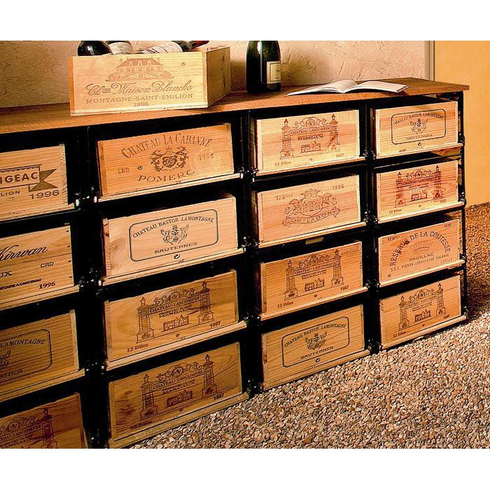 <p>Modular and modular metal shelving for 20 wine boxes,<br/> 240 Bordeaux-type bottles of 0.75 Lt.<br/> 10 Modules consisting of two sliding shelves mounted on bearings.<br/> (Wooden boxes not included)</p>