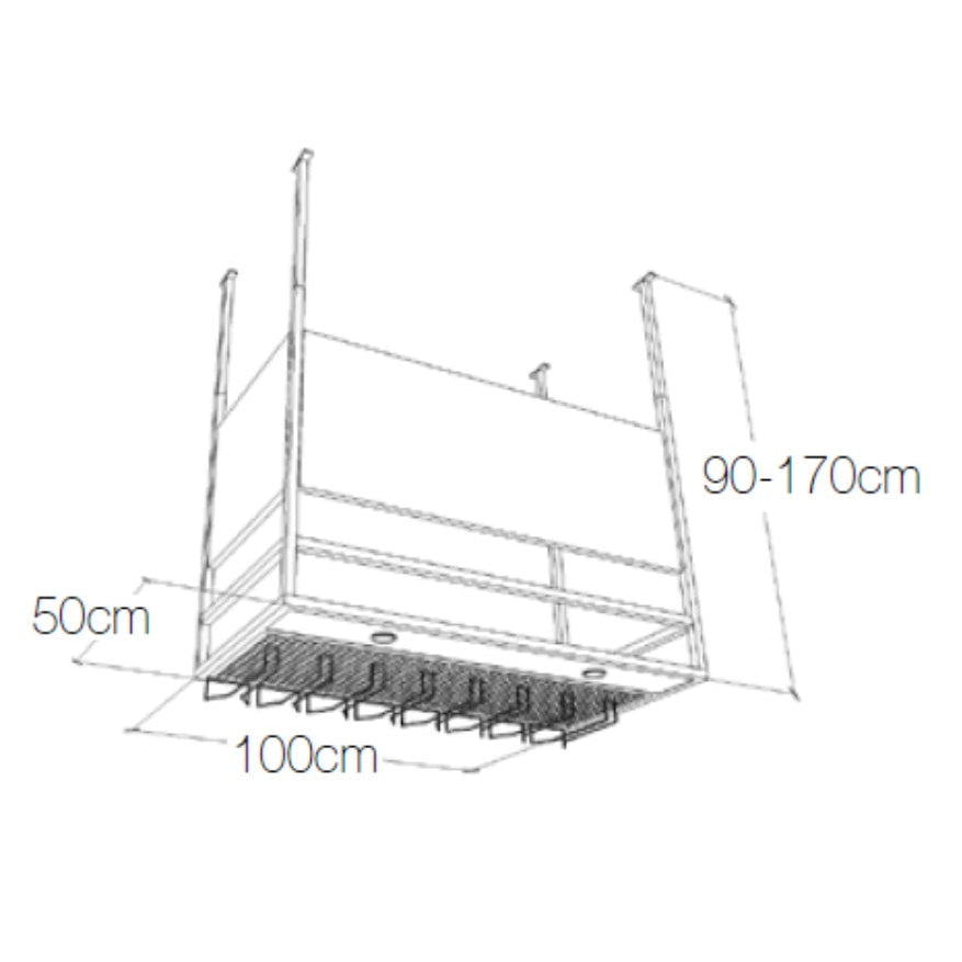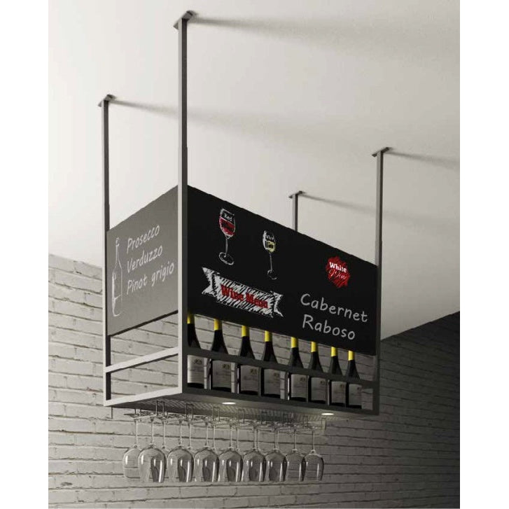 Cubik 100 - Ceiling mounted glass and bottle rack in metal
