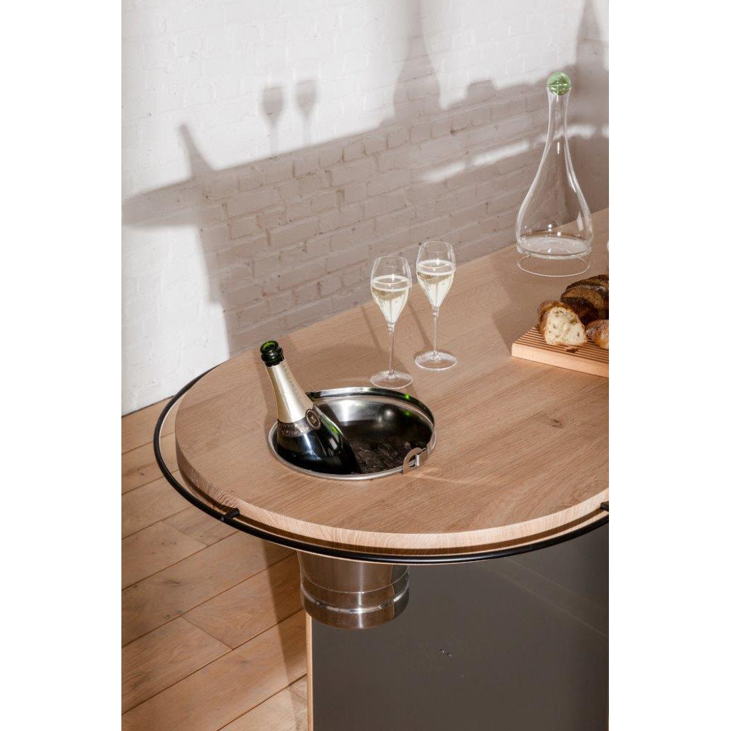 <p>Solid wood <strong>table</strong> composed of:<br/> - Upper floor<br/> - Downstairs<br/> - Sliding cup holder<br/> - Optional wheels</p><p> <strong>Three types of wood</strong>:<span style="text-decoration:underline;">- Olive Ash - Oak - Iroko - American Walnut</span></p>