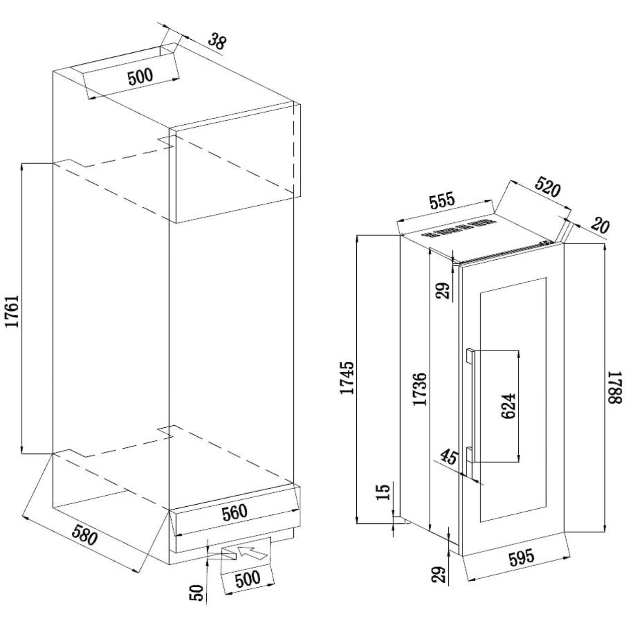 Frigorífico Cava Acero Empotrado Columna 97 bott. Triple Temperatura
