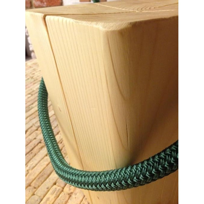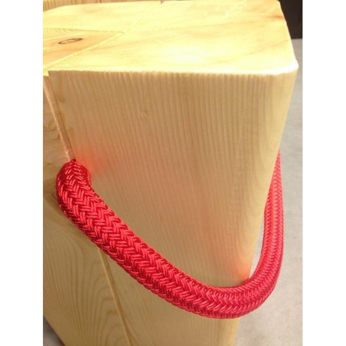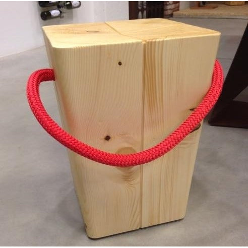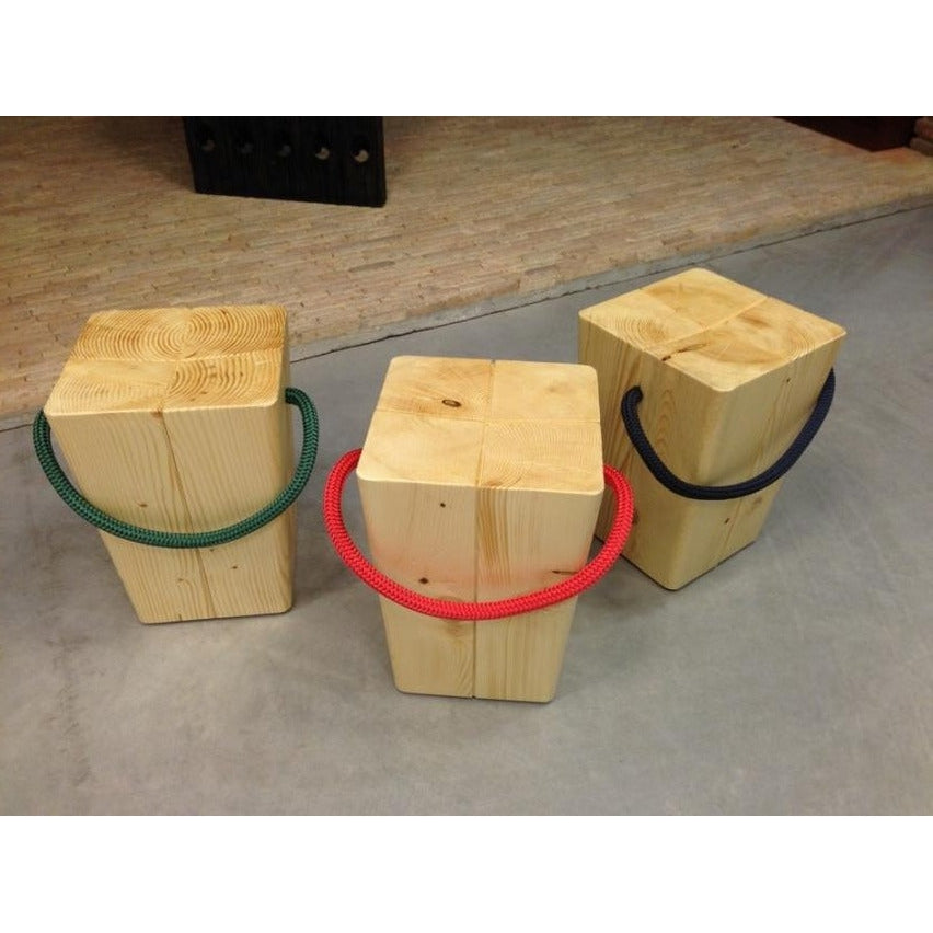 Tabouret en sapin naturel ou teinté avec poignée en corde de couleur bleu marine, vert anglais, rouge, chanvre, blanc ou noir .