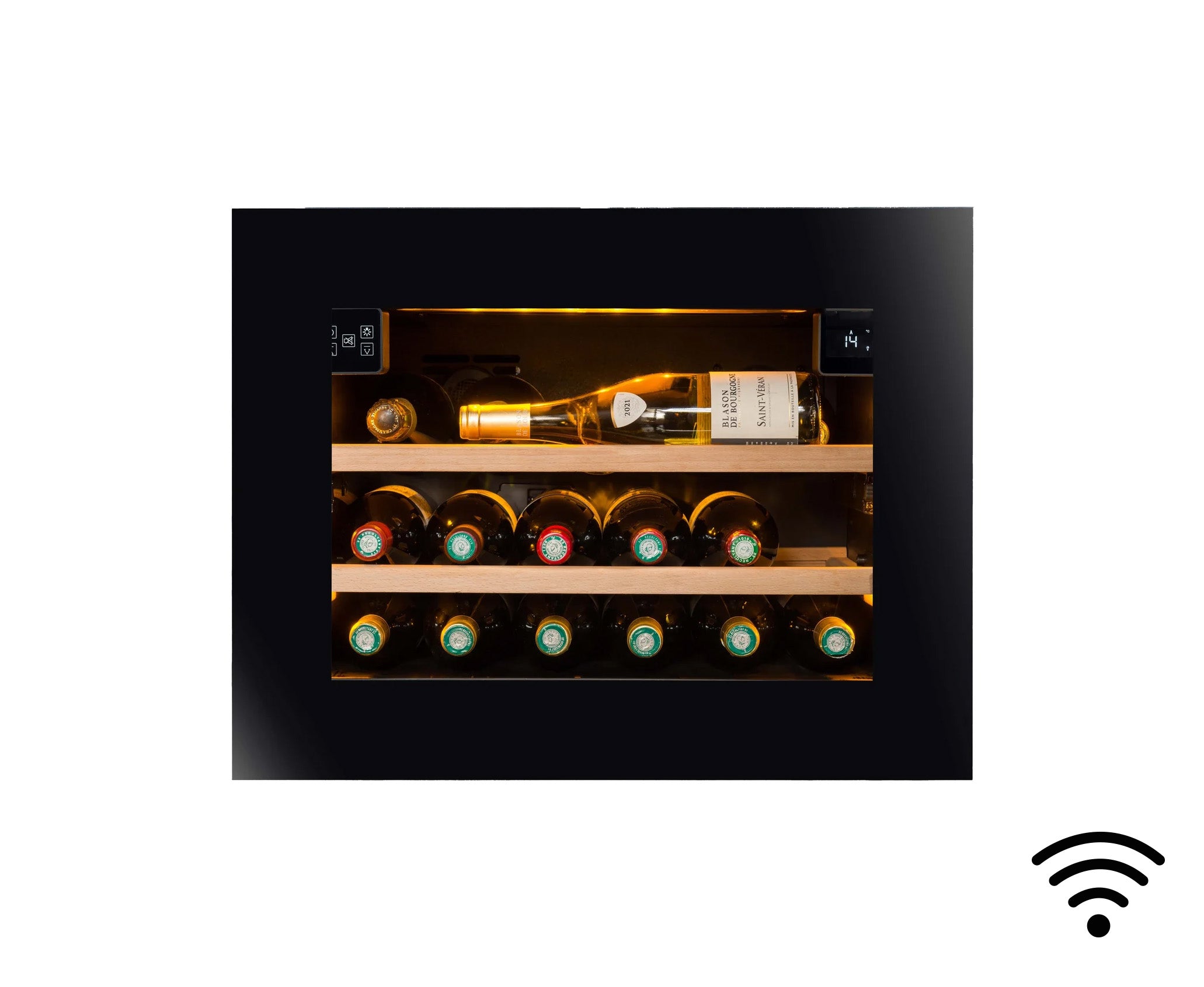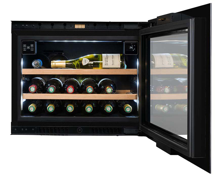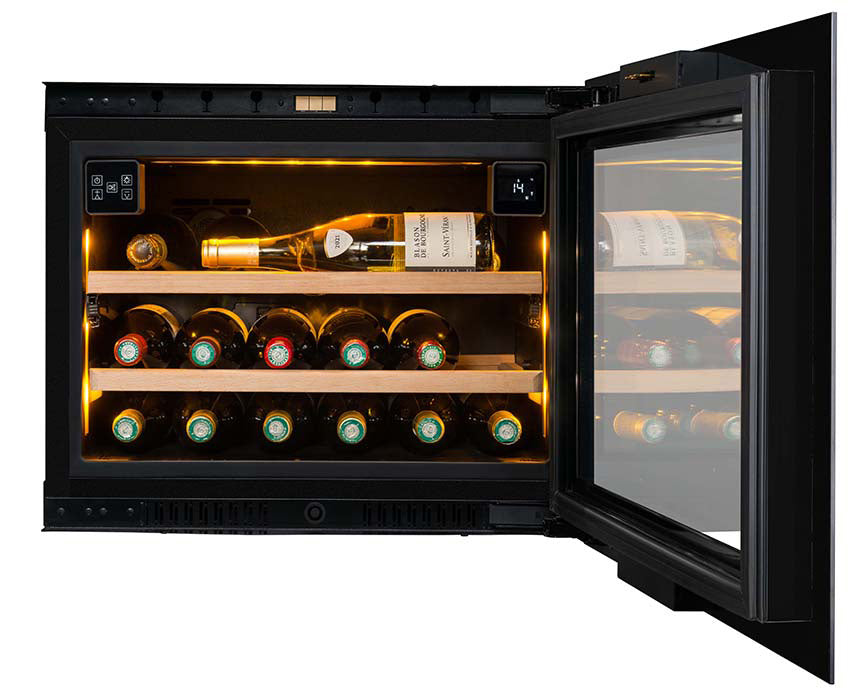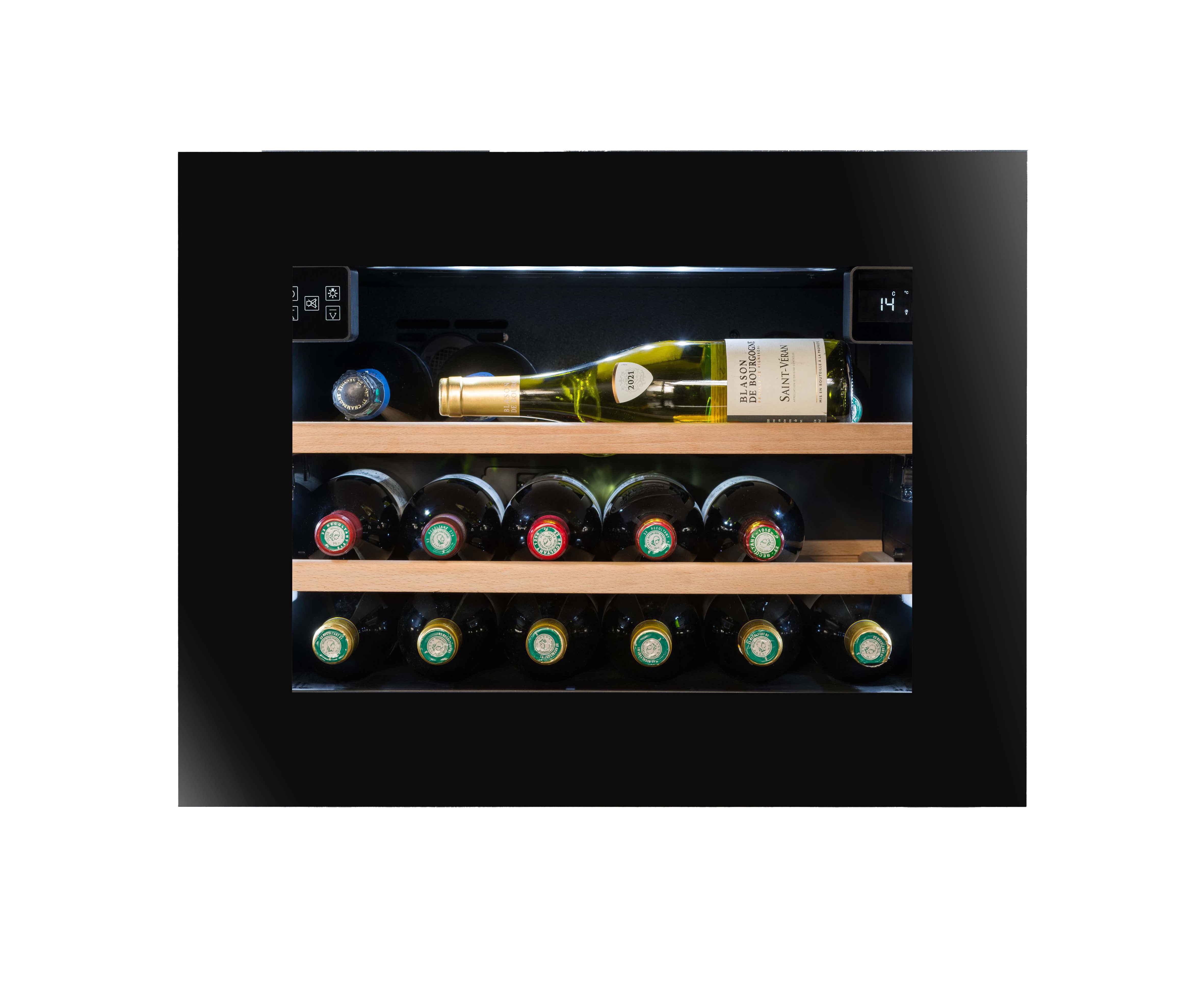 Wijnkoelkast Inbouw Kolomventilatie 21 flessen Dubbele Temperatuur - Push Pull Opening