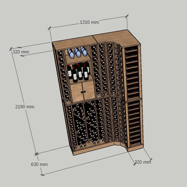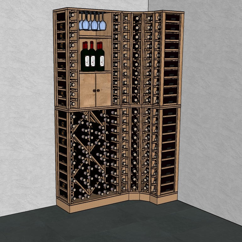 <p><strong>Hoekwijnrek van massief grenen - H.219 cm</strong><br>Capaciteit: 168 flessen (diameter van 60 tot 90 mm)<br> Inclusief 2 draaideuren, glashouders en verstelbare pootjes<br><br><strong>Kleuren:</strong> Hout <i>Natuurlijk - Op verzoek (Donker geverfd - Zwart geverfd - Wit geverfd)</i>&nbsp;<br><a href="https://cdn.shopify.com/s/files/1/0561/8535/6486/files/woodcolori.pdf"><span style="color:#942f2f;"><i>Kleurentabel</i></span></a><br><br><a href="https://cdn.shopify.com/s/files/1/0561/8535/6486/files/woodambienti.pdf"><span style="color:#a43232;">Galerij Omgevingen</span></a></p>