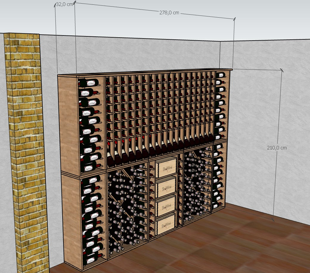 <p><strong>Modulaire Wijnrek Wand van Massief Grenen - H.210 cm</strong><br>Capaciteit: 440 flessen<br>1 Centraal Element met 4 uitschuifbare planken per kist<br><br><strong>Kleuren:</strong> Hout <i>Natuurlijk, op aanvraag: Donker Geverfd - Zwart Geverfd - Wit Geverfd</i>&nbsp;<br><a href="https://cdn.shopify.com/s/files/1/0561/8535/6486/files/woodcolori.pdf"><span style="color:#942f2f;"><i>Kleurentabel</i></span></a><br><a href="https://cdn.shopify.com/s/files/1/0561/8535/6486/files/woodambienti.pdf"><span style="color:#a43232;">Galerij Omgevingen</span></a></p>