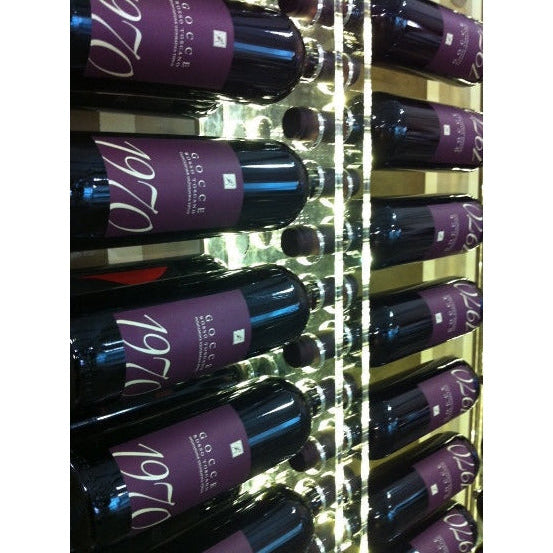 Ekspozytor ścienny o pojemności 38 butelek 0,75 litra. Akcesoria meblowe , które łączą w sobie poziomą pojemność do przechowywania w małych objętościach z wysokim efektem estetycznym w każdym środowisku.