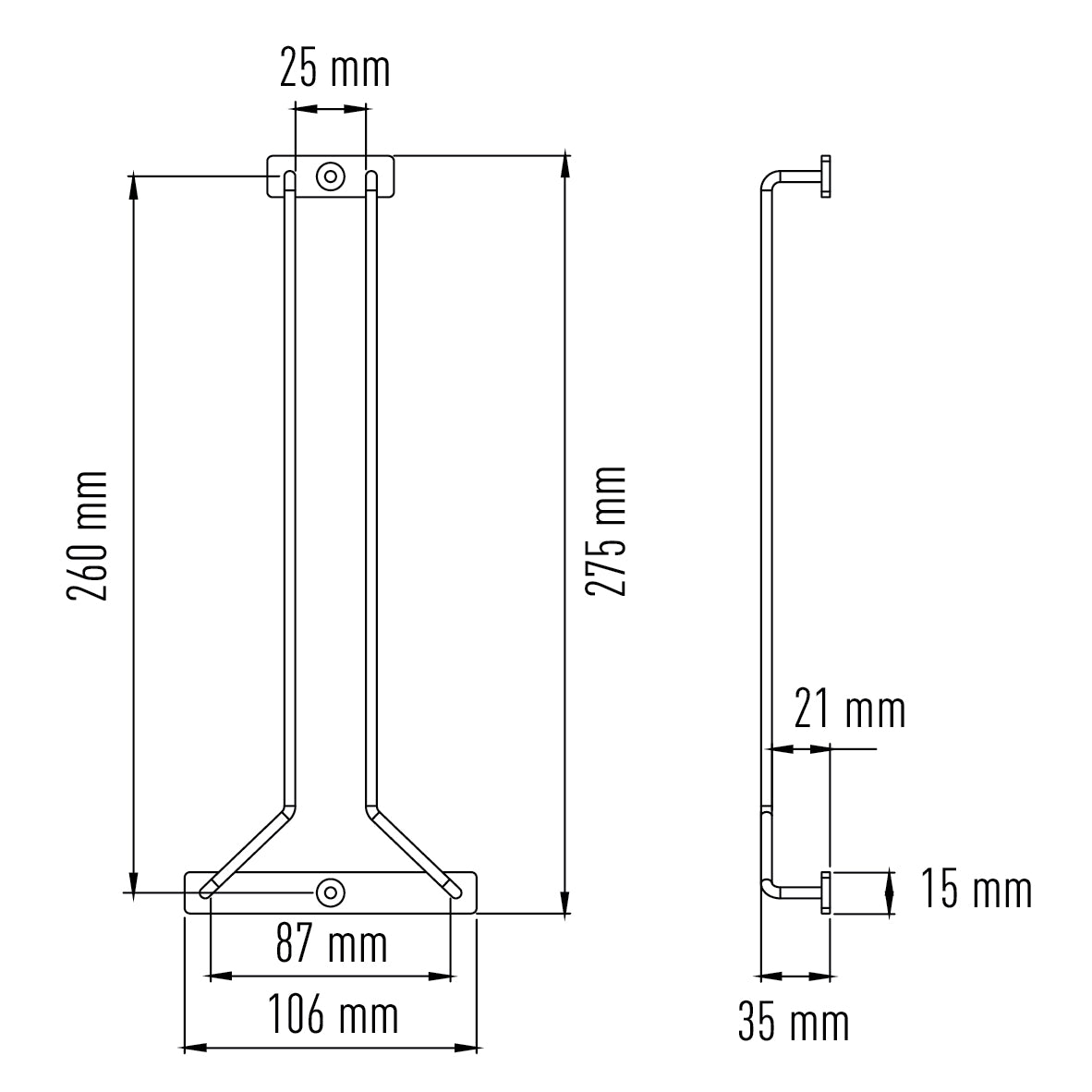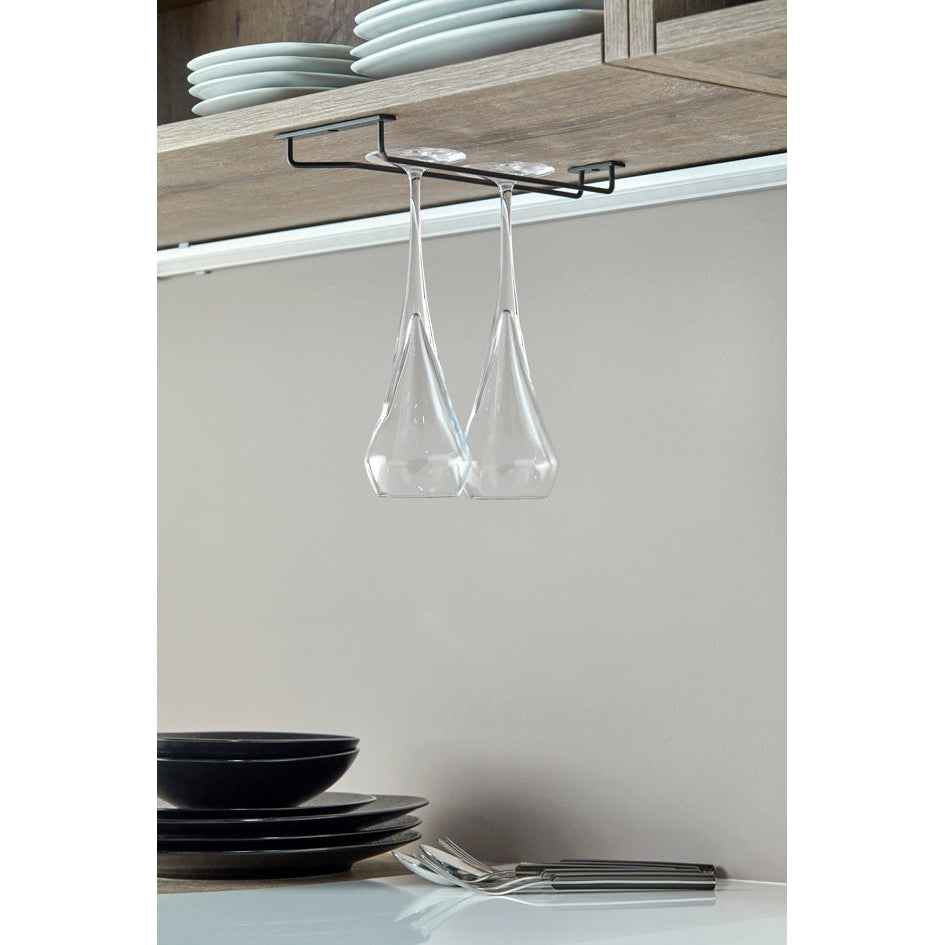 <p>Uniwersalny uchwyt na kubek pod meblościankę,<br /> nadaje się do szklanek o średnicy trzonka do 25 mm i grubości stopki do 35 mm.<br /> Konstrukcja całkowicie stalowa<br /> <strong>Szeroki wybór wykończeń <em>(matowy czarny malowany, <strong>malowany</strong> na biało, polerowany chrom, polerowane złoto, <strong>malowane aluminium, <strong>malowany grafit)</strong></strong></em></strong><br /> Bardzo łatwa instalacja.<br /> Pojemność: 3 szklanki.</p>