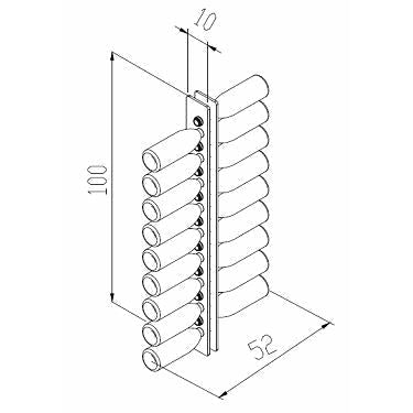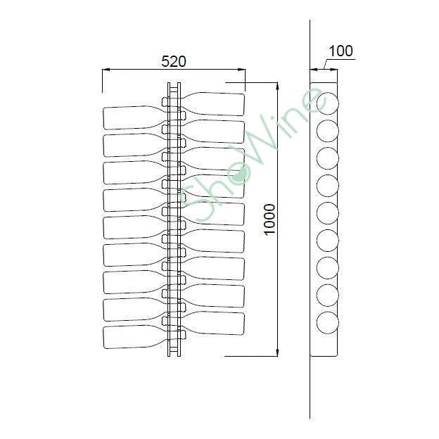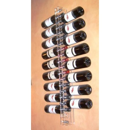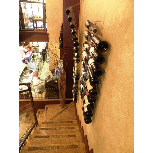 Espositore a parete. Colori: nero o trasparente. Capienza 18 bottiglie da 0,75 lt. Complemento di arredo che unisce la capacità di stoccaggio orizzontale in volumi ridotti ad un elevato impatto estetico in qualunque ambiente. Soluzione di design Made in Italy