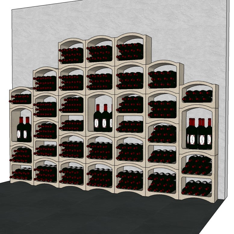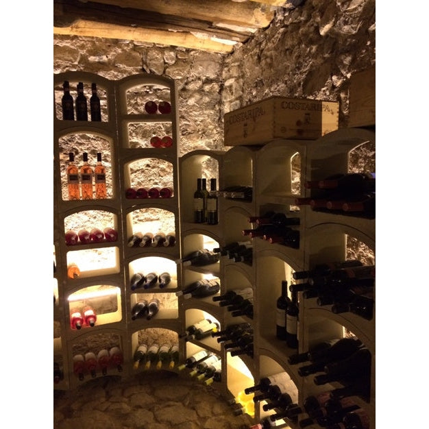 Anche con soffitti a volta ad altezze variabili, con i moduli Le Bloc Cellier puoi comporre la tua cantina ideale su misura, combinando fra di loro i diversi moduli.