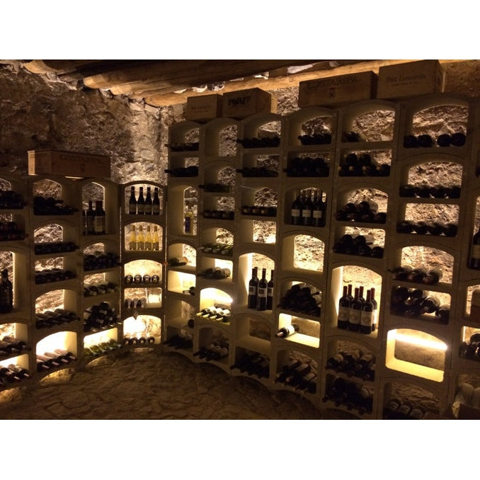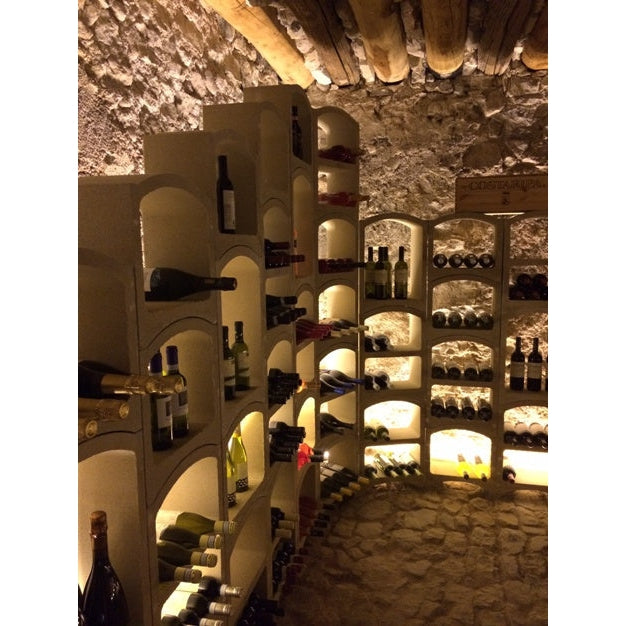 <p><i><strong>С</strong></i><strong>оздайте</strong> ваш винный погреб <strong>на заказ</strong>, даже с каменным сводчатым потолком, <strong>комбинируя</strong> разные высоты модулей.<br><strong>Это решение</strong>: 3 Макси + 6 Стандарт + 18 Средний + 2 Маленький.<br><strong>Вместимость:</strong> 415 бутылок бордоского типа объемом 0,75 л.<br><strong>Вес:</strong> 495 кг.<br><a href="https://www.showine.it/portabottiglie-vino-cantina/pietra-ricostituita.html?dir=asc&amp;limit=all&amp;order=position">Посмотреть всю серию</a></p><figure class="image"><img src="{{media url=" alt=""></figure>