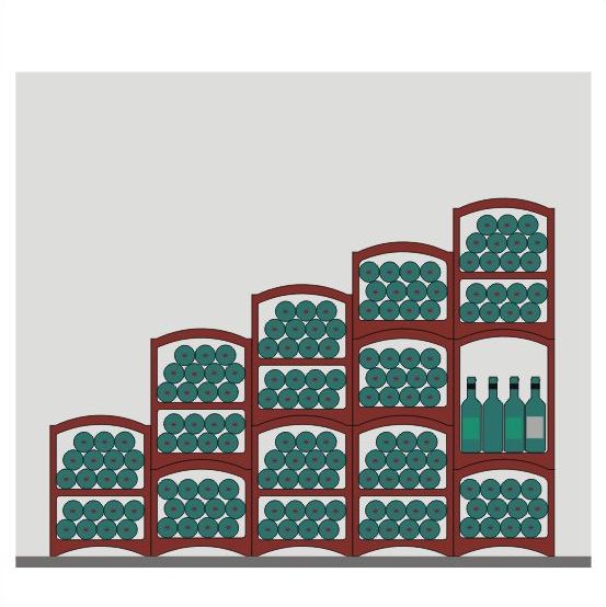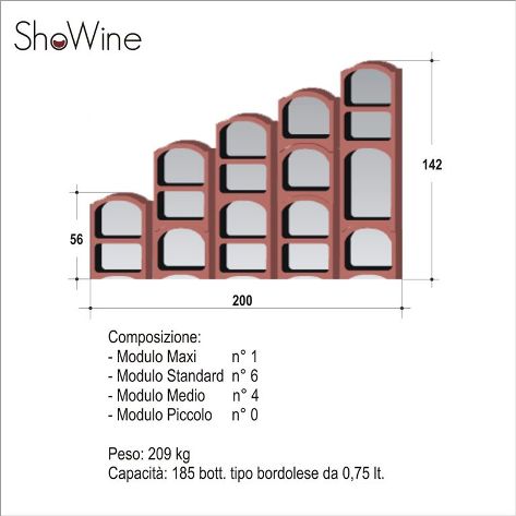 Capacità: 185 bottiglie tipo bordolese da 0,75 lt.